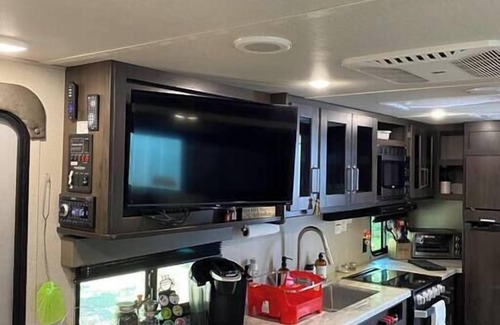 Enjoy the serene, spacious, pet & child friendly fully fenced home away from home. Route 66 themed, well stocked kitchen, bathroom, workspace, sofa w/recliners, fireplace, outdoor BBQ, patio furniture and more. 1 mile from downtown 15 minutes to PK (Possum Kingdom). Over 300 movies via Fandango . EV charger.