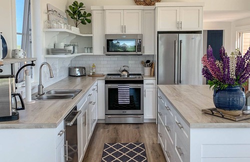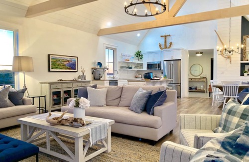 Graham’s Reef was newly constructed in 2019 on close to an acre lot. This quintessential beach house is situated to maximize privacy, sunshine & ocean views. A beautiful north shore beach is just a 2 minute walk from the cottage. To make beach days that much more enjoyable - we provide a handy wagon to help transport kids, beach toys, beach towels and snacks to & from the beach. If the kids like to play in the sand, but parents want to relax at the cottage, the large private courtyard on the sunset side of Graham’s Reef has a big sand area for the kids to play and get creative.