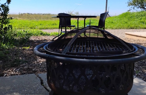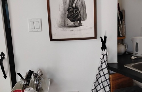 This tiny house is one of a kind. Build from an old grainbin. With its beautiful curved staircase going to the loft that sleeps 2 comfortably. It has fresh & light walls, a curved kitchen with all you need for a breakfast or a gourmet meal.