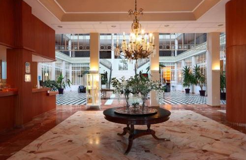 Gran Hotel Aqualange is set next to the Balneario de Alange Thermal Spa, in Alange, Extremadura. For an extra charge, guests have access to the Balneario's pools and spa facilities. Alange is known for its healing mineral waters. There are many historic towns nearby, including Cáceres and Zafra. Mérida is only 9.3 mi away. Rooms at the Aqualange are elegant and simple décor. They all have air conditioning and a spacious bathroom. The Balneario de Alange Spa has courtyards and gardens, with an outdoor swimming pool. There are hydromassage pools and a Hammam. Massages, body wraps and facials are also available. The hotel’s stylish restaurant has a glass roof. There is also a café and a relaxing library.
