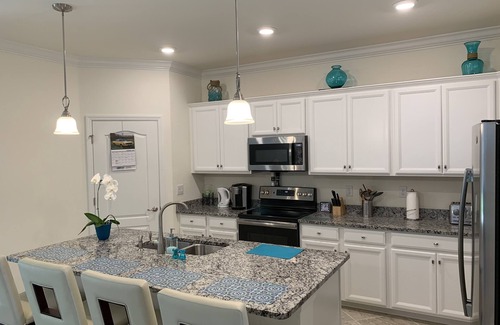 This beautifully decorated 4 bedroom 3 bathroom house is yours to unwind relax and enjoy your stay. Comfortably sleeps 6 adults and 2. Master Suite features a KING bed and a bath w/double sinks and tiled shower and soaking tub. Two of the guest bedrooms has Queen beds and 4th guest bedroom has a 2 twin beds. Dining table seats 6 w/additional seating for 4 at the breakfast bar. The Guest bathrooms features tubs with a shower. Kitchen has granite counters and stainless steel appliances, and includes all of the following to make your stay as comfortable as possible: Coffee maker, toaster, dishwasher; oven; microwave; cookware; dinnerware; kitchenware; beach towels, beach chairs & umbrella, iron & ironing board, hair dryer, washer, dryer and 3 bicycles.