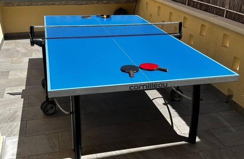 . Un salon avec climatisation, télévision, table basse, canapé convertible en très grand lit confortable avec draps, couvertures, placard avec verres apéritifs, de très nombreux jeux de société et une bibliothèque.