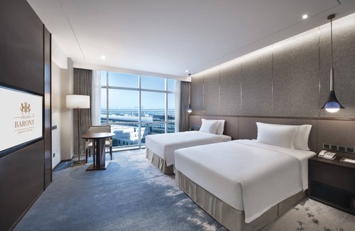 Grand Barony Hotel Qingdao Airport offers 245 accommodations with safes and complimentary bottled water. 50-inch LED televisions come with cable channels.