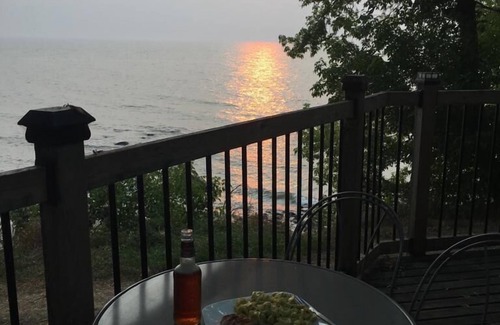 This is one of the best lakeside views in the Grand Beach cabin area!! The cabin has 3 bedrooms with a very nicely stocked kitchen. The living area has a large screen TV for those evenings that you want to just relax inside. If you are the entertaining types then the sunroom is where you will end up most of the time. This area has a couch, TV, bar and lots of seating to enjoy the days or evenings. The sunroom exits onto the deck which has a BBQ and seating facing the lake for the amazing sunsets!