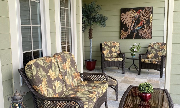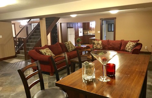 Enjoy the spacious grounds and luxurious open concept beach vacation home. Relax or entertain in the two fully contained levels - sleeps 10-12 comfortably - perfect for two families or a corporate retreat. Enjoy tranquil mornings, peace, quiet and the natural surroundings or an open private space to gather with family and friends. Awake to the warm sunrise while you relax with your morning coffee on the front covered tropical patio. Indulge with an afternoon cocktail on the sunny back deck or BBQ in the cozy picnic area nestled in the trees. In the evenings, catch the beautiful orange and red sunsets during a walk along the private beaches, just a few minutes drive from the cottage. At night, gather to roast marshmallows on the backyard fire pit while you watch the fireflies light up the grounds. Just minutes from scenic hiking trails, fishing, golf courses, charming restaurants and picturesque shops in Bayfield or the night life in Grand Bend.