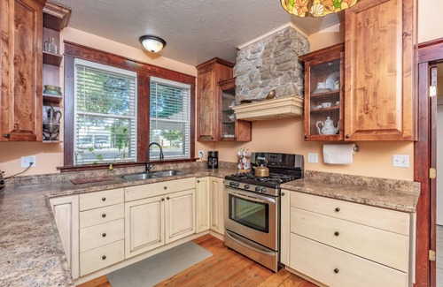 The Jackson House boasts an array of amenities designed to elevate your wedding experience. Enjoy four spacious bedrooms plus additional sleeping areas, three luxurious bathrooms, and inviting communal spaces perfect for heartfelt moments. Guests will appreciate the fully stocked modern kitchen, an entertainment room complete with a large flat-screen TV and serving bar, and a stunning backyard featuring a cascading stream and large patio for al fresco dining. The home is also pet-friendly, ensuring your furry companions can join in the celebration. With ample parking available for guests, your wedding festivities can flow seamlessly from celebration to relaxation.