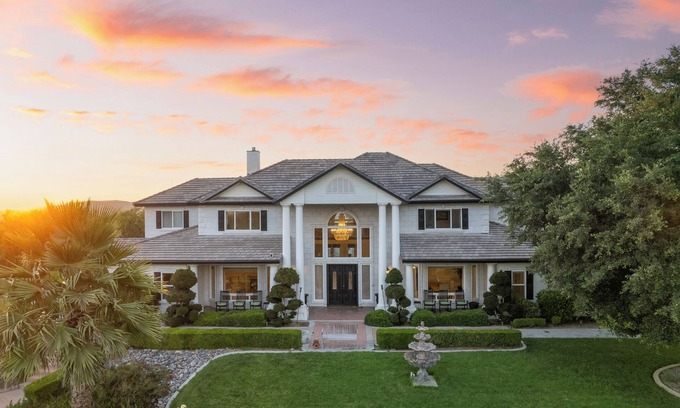 This elegant wine country estate is perfectly located within walking distance of award-winning wineries and vineyards. The main house offers high ceilings, ornate wood trimmings, and plenty of space for large groups. Guests will rejoice when they step into the fully equipped chef’s kitchen, 26 seat private movie theater, and beautiful two-story guest house– complete with a full kitchen, billiards table, and 82-inch screen TV. Outside, there’s never a dull moment with amenities for all ages, including a private pool and lounge, outdoor kitchen and built-in grill, and a fully-equipped playhouse. With a beautiful gazebo on the property, this home is an ideal place to watch the sunset over the hills with your favorite people, wine glass in hand.