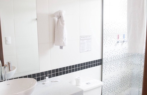 - Quarto confortável com banheiro privativo em aconchegante residência