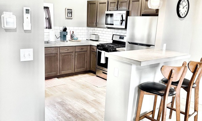 Apartment 2 of 2, above our family business Shake It. We offer delicious healthy shakes and smoothies, sandwiches , wraps, and more . Beautifully renovated. Bright and clean ! Peaceful and relaxing after a long day of exploring. Close to many tourist attractions. Large kitchen, comfy king size bed and couch, smart TV, large rain shower head and mini split A/C! A large Walk in closet to get ready in. We hope you enjoy your stay !