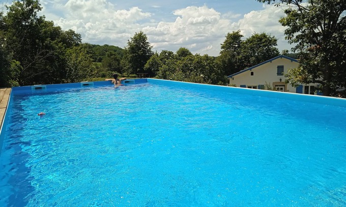 Our very large swimming pool (12m x 6m) is located on a bute with a breathtaking view of the Chalosse, it is heated from April to October, there is a poolhouse at the pool with shower, sink and toilet, as well as many water games for children.