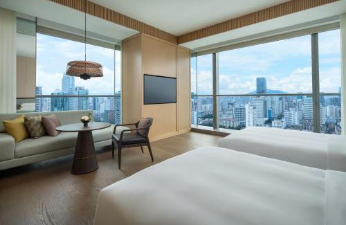 Grand Hyatt Kunming is attractively set in the center of Kunming, and provides a bar and free WiFi. Offering a restaurant, the property also has a fitness center, as well as an indoor pool and a sauna. The property has room service, a 24-hour front desk and currency exchange for guests. The rooms at the hotel come with air conditioning, a seating area, a flat-screen TV with cable channels, a safety deposit box and a private bathroom with a bath or shower, free toiletries and a hairdryer. All guest rooms will provide guests with a fridge. A buffet, continental or Asian breakfast is available at the property. At Grand Hyatt Kunming guests are welcome to use a hot tub. Popular points of interest near the accommodation include Kunming Hall, Jiaosanqiao Station and Dongfeng Square Station. Kunming Changshui International Airport is 16 miles from the property.