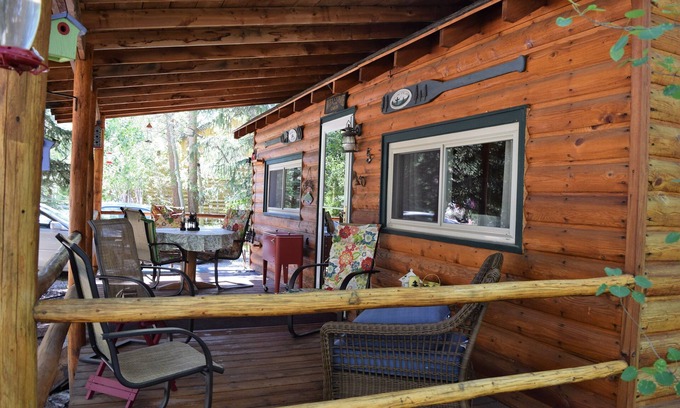 COZY CABIN ON GRAND LAKE. Enjoy Grand Lake in this charming log cabin located in Grand Lake's Lemmon Lodge historic area. This quaint cabin has the most spacious and comfortable front porch in all of Lemmon Lodge. There is sunny all pine living room with leather couch and chair along with a sleeper sofa. The electric fireplace will keep you warm and cozy on those chilly nights. Large separate master bedroom with king bed. Bathroom with shower. Newly remodeled kitchen is fully stocked with microwave.