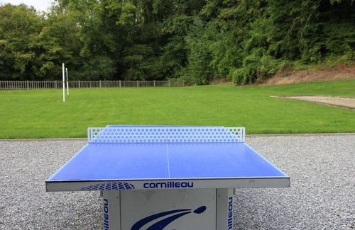 Set in the scenic Ardennes region of Anhée, this beautifully restored mill offers a spacious and luxurious retreat for up to 36 guests. With 14 bedrooms, including 33 single beds, 2 junior beds, 3 cribs, and foldable beds for children, it's ideal for large family gatherings or group celebrations. The home is surrounded by forests just 100 m away, perfect for peaceful walks and nature lovers. The property features a fenced lawn, football court, and a lovely terrace for outdoor relaxation. Inside, you'll find ample space for dining and socializing. Located just 1 km from the town center, 500 m from restaurants, and 12 km from a lake, it offers both tranquility and convenience. Adventurers can enjoy golf (16 km), horseback riding, climbing, go-karting, and even paragliding nearby. With castles, hiking trails, and mountain biking routes in the region, this mill is a perfect base for exploring the Dinant-Han-Chimay area. The nearest train station is 12 km away, making it easily accessible for guests arriving from afar. A truly memorable stay awaits in this unique and historic setting.