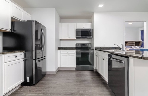 Our units are equipped with full kitchens, washer/dryer, smart TV, modern luxurious furnishings, and a private bathroom for each bedroom.