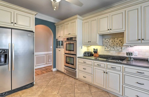 Perfect for a large family or group trip with friends, this 4-bedroom, 3.5-bath Mt. Gilead vacation rental offers a high-end home with spectacular water views! With a fully equipped kitchen, a game room, a private boat launch, and a 2-story dock with a slide, you have everything you need for a fun retreat. Hiking around Uwharrie National Forest, lots of wineries, and great golf courses are just a short drive away. You can also head out to The Fork Stables for clay shooting and horse riding!