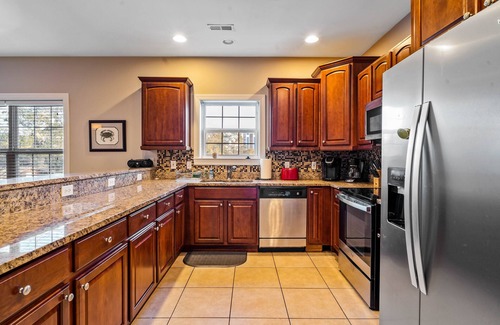 - Gourmet Kitchen: The main level features a fully equipped gourmet kitchen with granite counters and a breakfast bar, making it easy to cater meals for your guests or host a pre-wedding brunch.