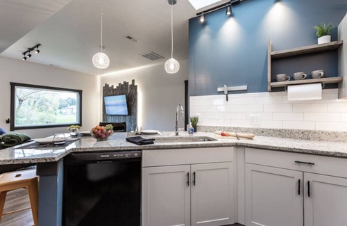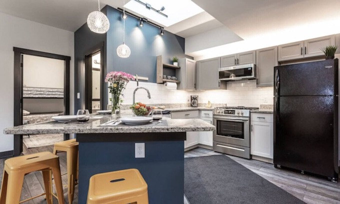 We know details are important. We kept this in mind while transforming this former 2 car garage into a stunning two bedroom apartment. Full kitchen (gas stove), full bathroom, laundry, skylight, mood lighting, good toilet paper, soap, sound machine - we've thought of everything. Come relax in our space.