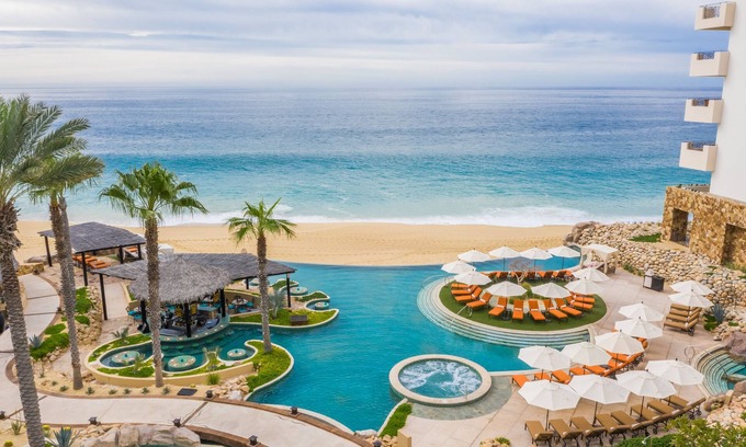 The Grand Solmar Lands End Resort And Spa boasts a wealth of amenities designed to make your stay as comfortable and enjoyable as possible. The resort features seven outdoor swimming pools, including a children's pool, providing options for leisure and fun in the sun. Additionally, indulge in some well-deserved pampering at the full-service spa or savor exquisite dining experiences at one of the four on-site restaurants. Each of the 244 elegantly appointed accommodations includes kitchens, furnished balconies, and plush bedding, ensuring that you feel at home while enjoying all the luxury that this 4.5-star resort has to offer.