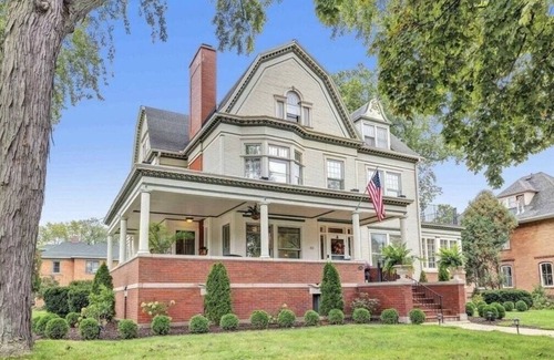 A 4-story 1896, 22-room Georgian Revival mansion and gardens, nestled two blocks between the Fox River Trail and St. Vincent/Belin Hospitals. Guests enjoy their own keyed private entrance, a Library, theatre, fireplaces throughout, private workstations, a garden conservatory, fire pit + grill, infrared sauna, weight room. Bicycles/helmets available.