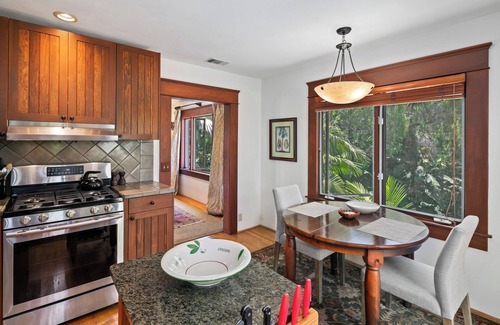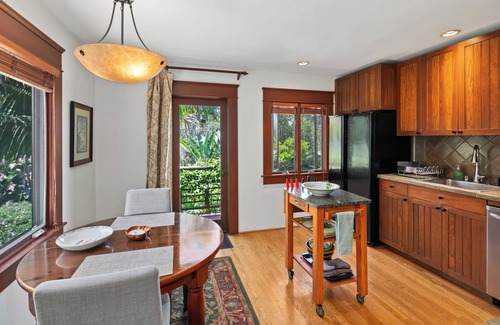 Set on an acre of tropical palms & flowering vines this Resort-like Duplex Residence offers its elegant upper floor - the spacious Treetop Suite - with its own private courtyard and handsome 5 room interior. Designed for a visiting couple or single traveler -- guests enjoy 1,000 sf of light-filled rooms with fine architectural details, an Airy Living Room with comfortable furnishings and Asian antiques, Charming dine-in Kitchen with gas range and dishwasher, Oversized dual pane windows with scenic outlooks from every window, Private laundry, Central AC, and one very spacious Bedroom w/quality King bed and en suite bathroom w/tiled walk-in shower and enameled cast iron tub. Showcased by San Diego's Save Our Heritage Tour of historic homes and surrounded by an acre of exotic palm trees & flowering vines-- this exceptional property offers its "Treetop" guests a private resort-like experience in a prized historic neighborhood adjacent Balboa Park, 5 minutes from Downtown and 15 minutes from San Diego International Airport. Across the street explore renowned Balboa Park -- 1200 acres of amazing gardens, famous Zoo, fine art museums, and award-winning theaters. Take an evening stroll through North Park's restaurant scene with over 1,000 eateries - from delicious budget-friendly tacos to superb fine dining - just blocks away along North Park's lively 30th Street.