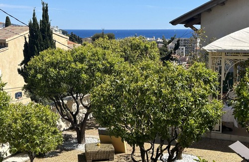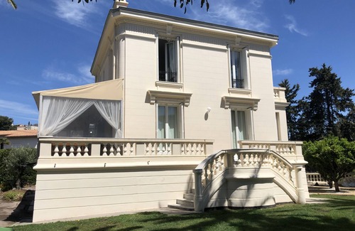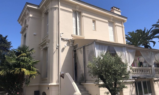 Grand "art deco" villa 1900 with high ceilings located steps away from the sea and shopping area. The house is composed of a large living & dining room with sea view and a modern kitchen, 5 bedrooms and two bathrooms with all convenience. It is nested in a large park.