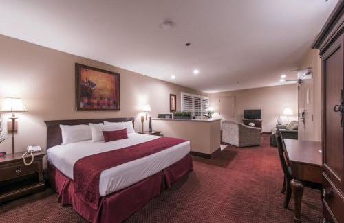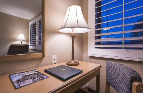 Featuring an outdoor pool with a hot tub, this Simi Valley hotel also includes a gym and pool tables. Each spacious room includes deluxe bedding and Ronald Reagan Library is 2 miles away. Grand Vista Hotel offers rooms with cable TV and free Wi-Fi. They are furnished with light wood furniture, a microwave and a refrigerator. Coffee facilities are also provided. Dining options at the hotel include Vistas Restaurant and the Arena. The Arena Sports Grill & Bar features 25 TVs, 10 satellites, darts and NTN trivia. The Simi Valley Town Center is less than one mile from the Vista Grand Hotel and offers shopping and restaurants. The Six Flags Magic Mountain adventure park is 32 miles away.