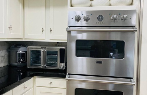 This fully equipped kitchen boasts modern Viking appliances and Sub Zero refrigerators, making it easy to whip up anything from delicious breakfasts to gourmet dinners. With ample granite countertops, you'll have plenty of room to showcase your culinary skills.