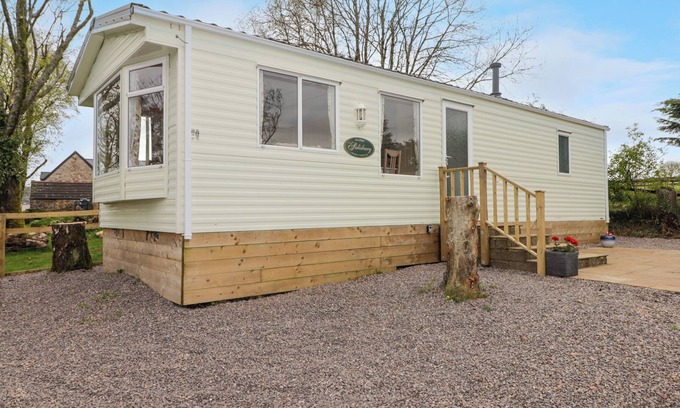 Grandads Shack is a single-story caravan with two bedrooms: a double with Jack-and-Jill access to a shower room, and a twin. The shower room features a walk-in shower, basin, and WC. Its open-plan living space includes a well-equipped kitchen, dining area, and sitting area with a sofa bed and electric fire. Amenities include gas central heating, gas oven and hob, microwave, fridge, and air fryer. Entertainment options include a Smart TV, WiFi, and books. Fuel, power, bed linen, and towels are included. Outside, there's private driveway parking and an enclosed garden with decking, lawn, and picnic bench. One well-behaved pet is welcome. Sorry, no smoking. You can find a shop within 0.8 miles and a pub within 2.1 miles. Enjoy mountain views from a peaceful location at Grandads Shack. Starter pack of wood and coal included. Note: Steps up to property. Sofa bed for flexibility; max. 4 guests.