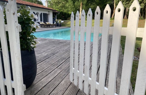Quiet, facing south, with a closed garden of 2500 m², you will enjoy the pool (10m x 5m), terrace 150m2 and for children a space of 2000m2 game (sun or shade) with games 'exteriors. In addition, you will have in this villa Arcachonaise style overlooking the garden, comfort for a pleasant holiday (Barbecue, kitchen, new bedding, wireless internet access on the terrace ...)