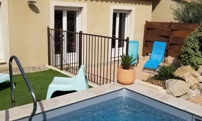 Yes, this Caromb villa has a swimming pool. Check the Facility Overview section for details about the pool and other available facilities.