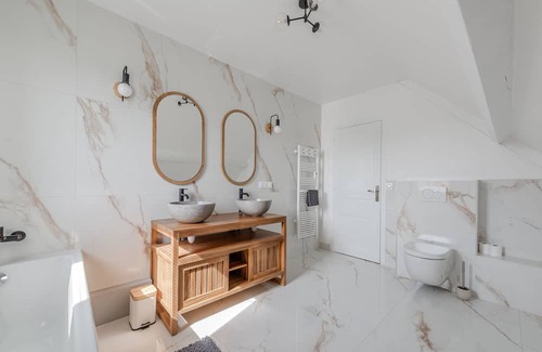 Nestled in Chalifert, this 5-bedroom, 2-bathroom vacation home brings it all within your reach. Fans of nature and the outdoors will love being 15 minutes by car from Vaires-sur-Marne Lake and 13 minutes from Canal de l'Ourcq. Val d'Europe is an easy 14-minute walk away or make quick work of the 6-minute drive to Aquatonic Paris Val d'Europe.