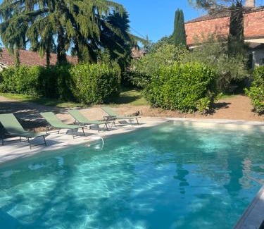 Grande Maison de famille, 12pers, Piscine privée, Vallée du Lot & Bastides offers accommodations in Lédat, 24 miles from Agen Exhibition Centre and 25 miles from Walibi South-West. With garden views, this accommodation features a balcony and a swimming pool. The villa also provides free Wifi, free private parking, and facilities for disabled guests. Providing a terrace and pool views, the spacious villa includes 5 bedrooms, 2 living rooms, flat-screen TV, an equipped kitchen, and 4 bathrooms with a walk-in shower and a bath. Towels and bed linen are provided in the villa. For added privacy, the accommodation has a private entrance and soundproofing. For visitors looking to embark on day trips to nearby landmarks, the villa offers a selection of packed lunches. If you like to discover the area, cycling, hiking and walking tours are possible in the surroundings and Grande Maison de famille, 12pers, Piscine privée, Vallée du Lot & Bastides can arrange a bicycle rental service. Stade Armandie is 23 miles from the accommodation, while Villeneuve sur Lot Golf Club is 7.1 miles away. Bergerac Dordogne Périgord Airport is 34 miles from the property.