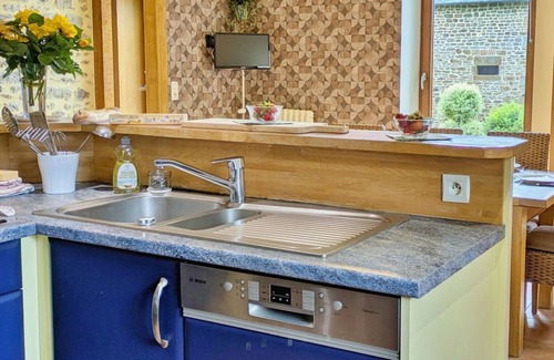 For a family stay, you'll appreciate the spacious dining room with fireplace, the well-equipped kitchen, the living room, and the four bedrooms. Each bedroom has its own sink, and a shared shower is accessible to all. The master bedroom has its own private bathroom. The cottage is near a working dairy farm. Places to discover: