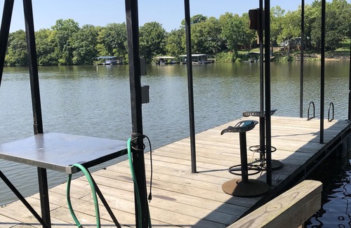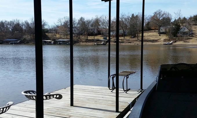 This house sits in a very calm cove on the 87 mile marker on the Ozarks side perfect for tubbing little ones, riding wet bikes or just swimming or maybe a little fishing from our private covered dock. Your welcome to bring your boat, the boat launch is in Twin Beach just mins. From Grandmas Getaway.