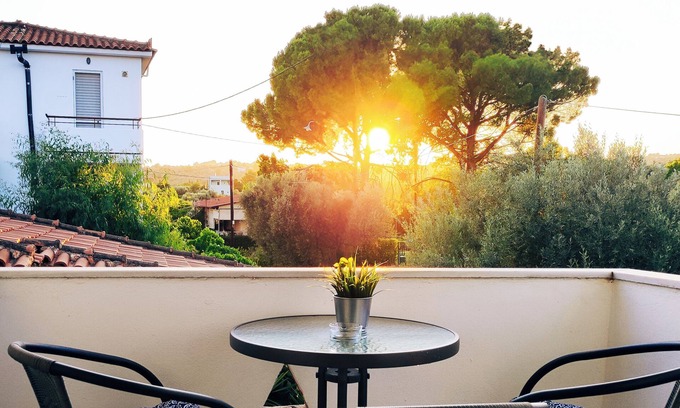 A quiet and pleasant apartment with all amenities, overlooking nature, and just 200 meters from Politika Beach and its taverns. The apartment complex is situated on a plot with walnut trees and a large pine tree that dominates the surrounding area as you enter. This pine tree was planted many years ago by the owner’s grandmother, adding a unique history and character to the place.