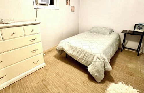 Located in Gillette, the property is in a quiet neighborhood. This basement has 3 bedrooms, including 1 queen bed and 2 twin beds, it's perfect for families or groups of friends. Entry is through the front door of the main house and then down a set of stairs into the basement. It has a full living room and dining area. The bathroom is equipped with a hair dryer and a shower. Stay connected with WiFi and enjoy the convenience of a washing machine. The basement also has heating and AC units to ensure your comfort. Gillette awaits you, and our wonderful basement is ready to welcome guests. Come enjoy your time in Gillette!