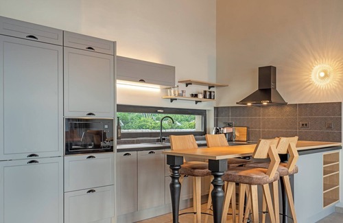 open plan area with a comfortable sitting room, a spacious dining area, a large fully equipped kitchen