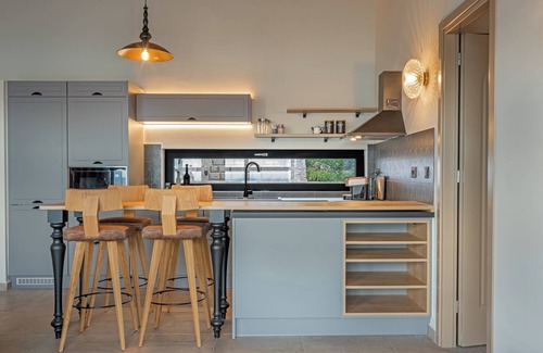 Ideal for a relaxing Greek getaway, this sparkling new villa combines contemporary interiors with al fresco living.