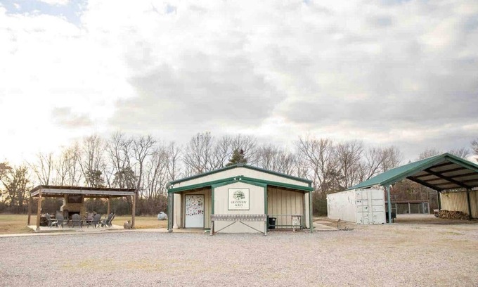 Grandview Acres guests are blessed with county atmosphere AND city convenience. Located 25 miles south of Stuttgart, just outside DeWitt city limits, the Bunkhouse was designed with hunters in mind. With 4 bedrooms and 3 full baths, 14 guests can enjoy a large living room, kitchenette, outdoor pavilion w/ fireplace, game cleaning station, kennels, boot room, covered shed, huge gravel parking area on 35 acres. Plenty of space to enjoy good company and relax before the next hunt. The outdoor enthusiast will enjoy the wildlife theme of the Bunkhouse. When you rent the entire bunkhouse you only share outside amenities with Grandview Acres Lodge guests. The owner’s home is right next door and she is available by cell phone. We do have 4 dog kennels you can reserve. Please let the owner know how many you will need. Pets are not allowed inside the Bunkhouse.