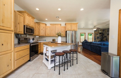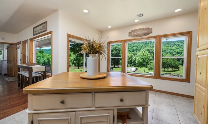 Grandview Getaway is the crown jewel of Little River Cabins—our most scenic and spacious retreat on 26 private acres. Steps from the river, enjoy kayaking, fishing, stargazing, and peaceful views of the Kiamichi Mountains. Two queen bedrooms with ensuite baths, full kitchen, Roku TVs, board games, and a Blackstone grill (propane provided) make this the perfect nature escape. Canoes, kayaks, and life vests included!