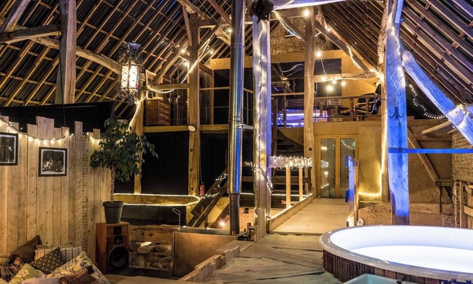 You will have access to the bohemian room, the Nordic bath and sauna areas, as well as the garden. The Nordic bath area (no bubbles) includes a living room, a 2m diameter bath and a relaxation area and/or additional bed for two people. The sauna area of course includes a large sauna, a small lounge and an open bathroom area, all with a view of the barn. In the large garden, you will find a summer lounge with brazier. You have access to the facilities at will, in private.