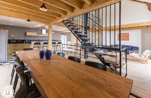 Are you dreaming of a stay with your group of friends for a flawless reunion or with grandpa, grandma, uncle André and the little ones in a large, ultra-comfortable house in the heart of an authentic and genuine Auvergne? You can book the Saint-Martin barn, it ticks all the boxes! This old family barn still smells of fresh paint. Everything has been designed for your well-being, taking care not to damage the soul of the old stones and we love that! On sunny days, we can already hear the laughter of the children having fun in the large garden. Under the snow, it is the living room that will be the perfect place for beautiful evenings of warm palaver in the huge soft blue sofa. Let yourself be tempted, we assure you, the Saint-Martin Barn will be the perfect setting for your most beautiful memories. The cottage is composed on the first floor: - A large living room with open kitchen: this is the centerpiece of this magnificent house - A bedroom with a 160 bed and a private bathroom with a spa bath - A utility room - A separate toilet On the second floor: - A TV lounge on the mezzanine - Two bedrooms with a 160 bed (or two 80 beds) and a private shower room/wc each - A bedroom with a 160 bed (or two 80 beds) - A shower room - A separate toilet On the ground floor adapted for people with reduced mobility: - An entrance and a laundry room - A living room-kitchen with a games and television lounge area - Two bedrooms each with 2 80 beds that can be joined together - A shower room - A separate toilet Only the ground floor is adapted for people with reduced mobility - no access ramp or elevator for the 1st and 2nd floors. The cottage is equipped with a quick electrical outlet for car charging. Rentable for 8 people: 63G1725 Gite less than 2km from the GR30, tour of the Auvergne Lakes