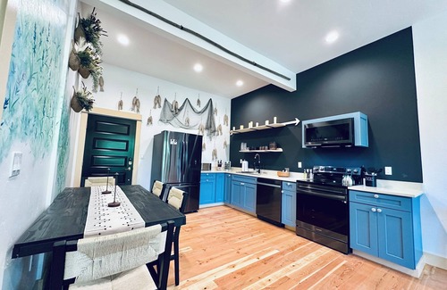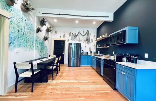 Stay at Granite Butte, a luxury 2nd FL condo in Enterprise's historic Litch Hotel, blending modern comfort, vintage charm and a Nez Pierce Theme. It features 11 ft ceilings, wood floors, tiled bathroom, quartz countertops, locally handmade tableware, and AC.