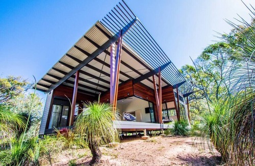 The central hub of Grass Tree is the large deck, complete with outdoor kitchen (no microwave or oven - BBQ and gas cooktop only), alfresco dining area and sun lounge to absorb the sunshine and serenity. The cosy indoor lounge features fully retractable glass doors, which open to capture cooling sea breezes. Even the bathroom makes the most of the outlook through large “hatch style” windows, opening to reveal an untouched vista of the impressive flora. Despite getting back to nature, Grass Tree is about comfort and style. The master bedroom has a luxurious king-sized bed, A/C, ceiling fan, LED mood lighting and glass panelling to enjoy the natural beauty.