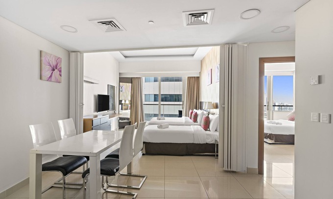 Whether you're seeking a weekend getaway or an extended stay, this studio apartment offers a comfortable and stylish oasis amidst the bustling energy of Dubai.
