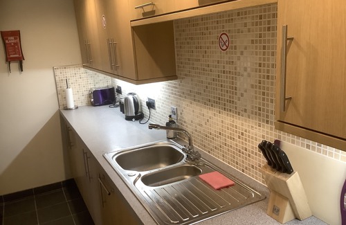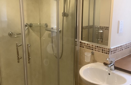 Three comfortable bedrooms, each with double bed, work-space, storage space, TV, and en-suite shower room. Living/dining area and fully equipped galley kitchen. Free parking close by. Wireless internet. Longer term rates available e.g. for those looking for accommodation while working in the area.