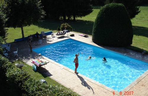 The large garden has a beautiful swimming pool (14 x 7 m) surrounded by a stone terrace. A table and chairs invite to meals under the trees by the pool.