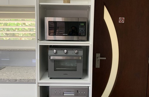 - Fully Equipped Kitchen: The kitchen comes complete with modern appliances including a stove, oven, microwave, and more, allowing you to prepare meals for your group or host intimate gatherings before the wedding.