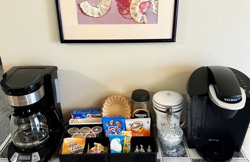 With two bedrooms downstairs and two upstairs, this house offers plenty of space for families or groups of friends. The bathrooms are equally impressive, with a tub and shower downstairs and double sinks and a shower upstairs. Plus, with a dedicated utility room complete with washer, dryer, and ironing board, you'll have everything you need for a stress-free stay.