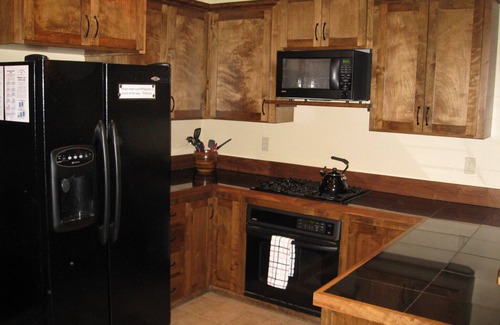 The kitchen has a gas stove, oven, microwave, automatic dishwasher, disposal, and built in ice maker. The kitchen has everything needed to prepare and serve a complete meal. There is a breakfast bar area for two and a dinning table that seats six.